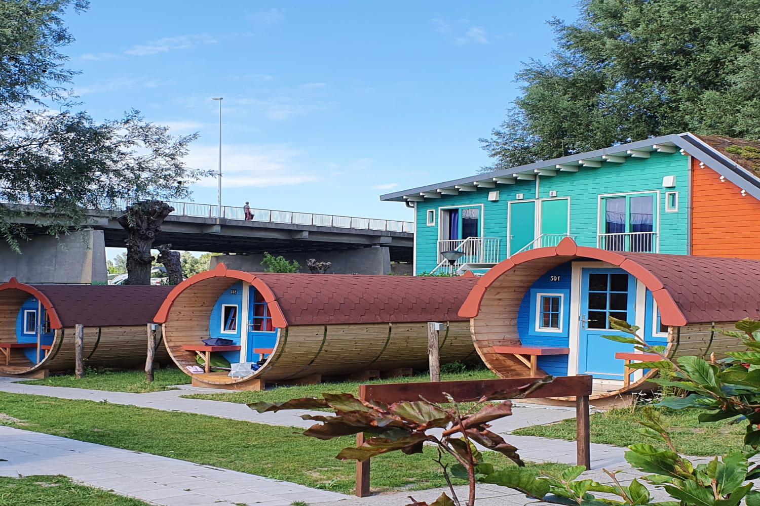 Een romantische Barrel of IJ-Pod. Duurzame Eco- cabins of een kleurrijke Wagonette met een prachtig uitzicht aan het water!