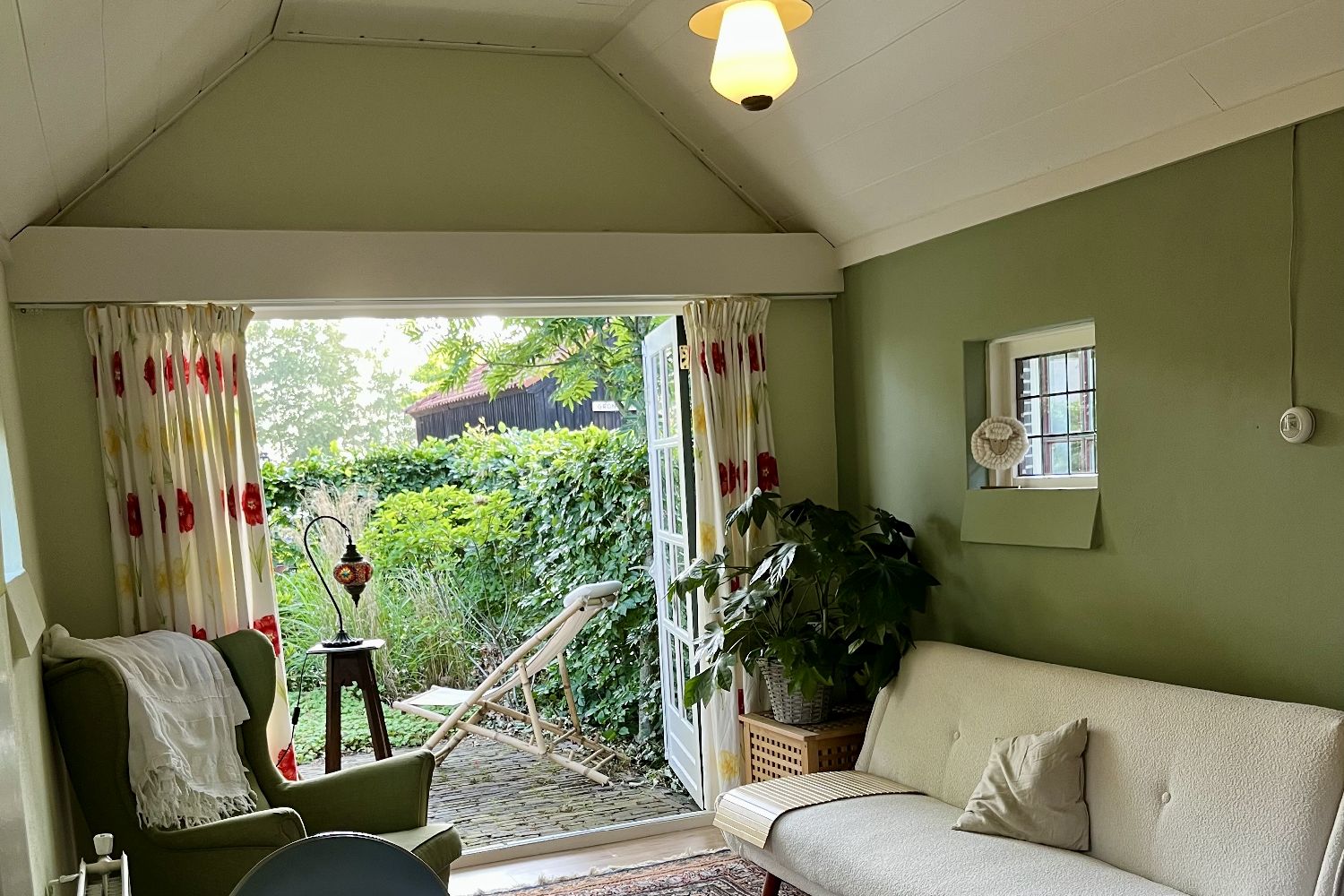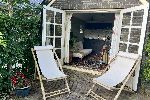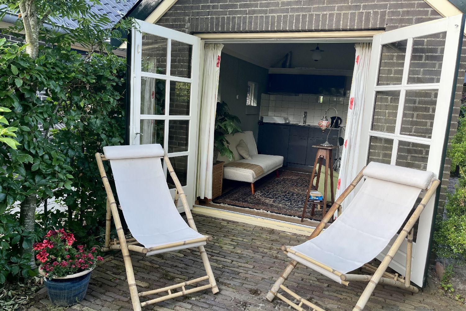 Fijn (verbouwd) bakhuis met terras en tuintje omringd door beukhaag ten behoeve van de privacy. Voldoende zon, maar ook de mogelijkheid om in de schaduw een boek te lezen.