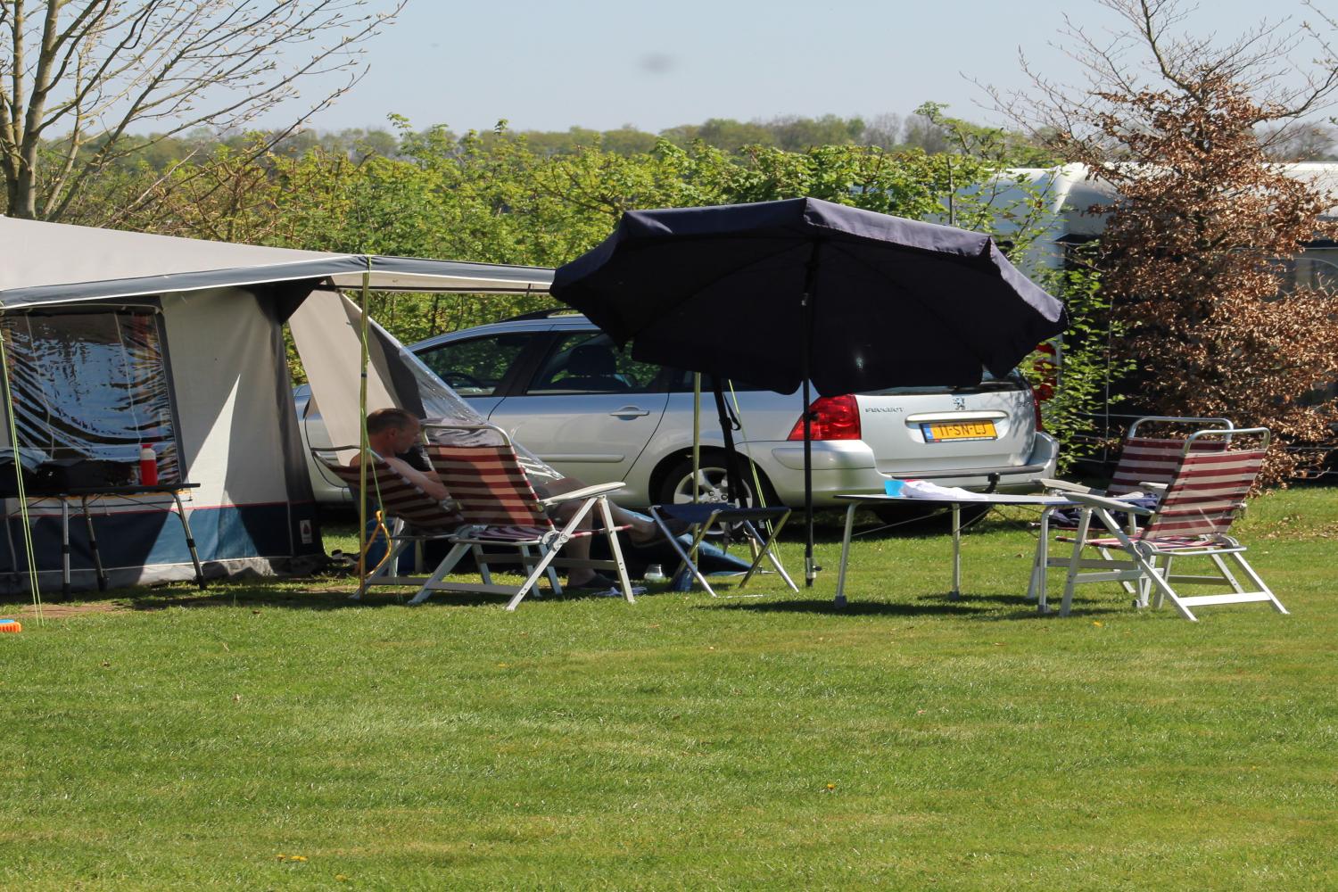 Wij bieden u ruime plaatsen welke bijna allemaal betegeld zijn zodat uw voortent schoon en vlak staat en bij elke plaats is elektra. Er zijn ook 6 camperplaatsen met een servicepunt.